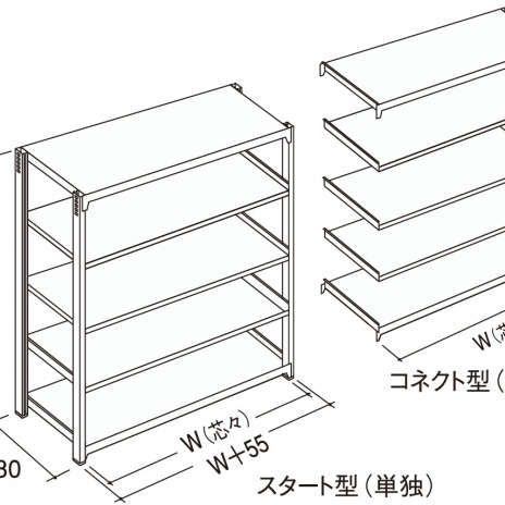 棚取付穴ピッチ=50mm