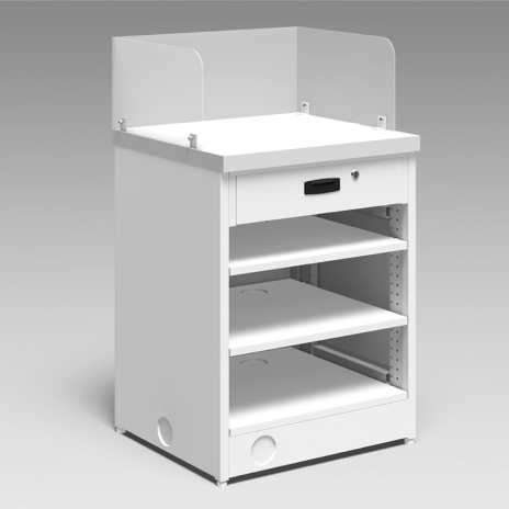 ポイント台・レジ台(深型)用の側板としてご使用ください。 取付は本体の内側より穴あけ加工後タッピングで取付けてください。
