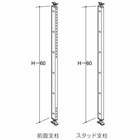 前面支柱 ベースアジャスター、トップアジャスター付 スタッド支柱(スリットなし) ベースアジャスター、トップアジャスター付
